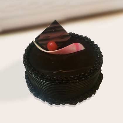 Product Overview Weight – 1 kg Serves - 10-12 people Flavour – Chocolate Shape – round Type of cake – Cream based Knife and Candle are inclusive with cake Note This rich chocolate cake is all about chocolate frosting all over with cherries and chocolate designs on top. This cake comes packed in a strong cardboard box which prevents the cake from spoiling. The appearance of this cake may vary as shown in the image