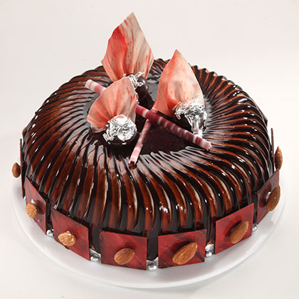 Weight – 1 Kg Serves - 10-12 people Flavour – Chocolate Shape - Round Type of cake – Cream based Knife and Candle is inclusive Note: This cake will be garnished on top with fresh cream, chocolate liquid, crème spread and chocolate pieces on top. The designing using all the toppings may vary a little from the image shown. This cake will be delivered in a sturdy cardboard box. The decoration items, cake stand and other accessories used in the image are just taken in use for representation purpose. These won’t be delivered with the cake