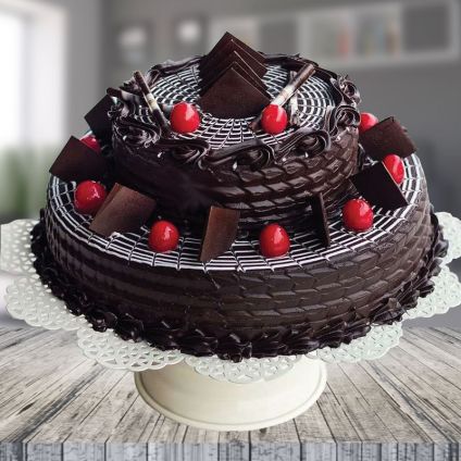 Weight – 2 kg Serves - 20-24 people Flavor – Chocolate Shape –Two-tier Round Cake Type of cake – Cream based Knife and Candle are complimentary.