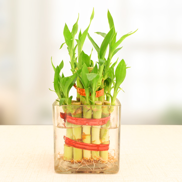 Spread happiness, good fortune, and prosperity in the lives of your near and dear ones with this beautiful and green two layer lucky bamboo plant placed in a glass vase. Heighten the beauty of their home décor while imbuing their lives with gaiety and success with this eco-friendly gift. As bamboo plants attracts positive vibes and stave off negative energies from homes, this one is certainly a great gift for the ones who you immensely care for.