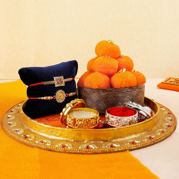 Set of 2 Rakhi 500 gm Motichoor Laddu Roli Chawal
